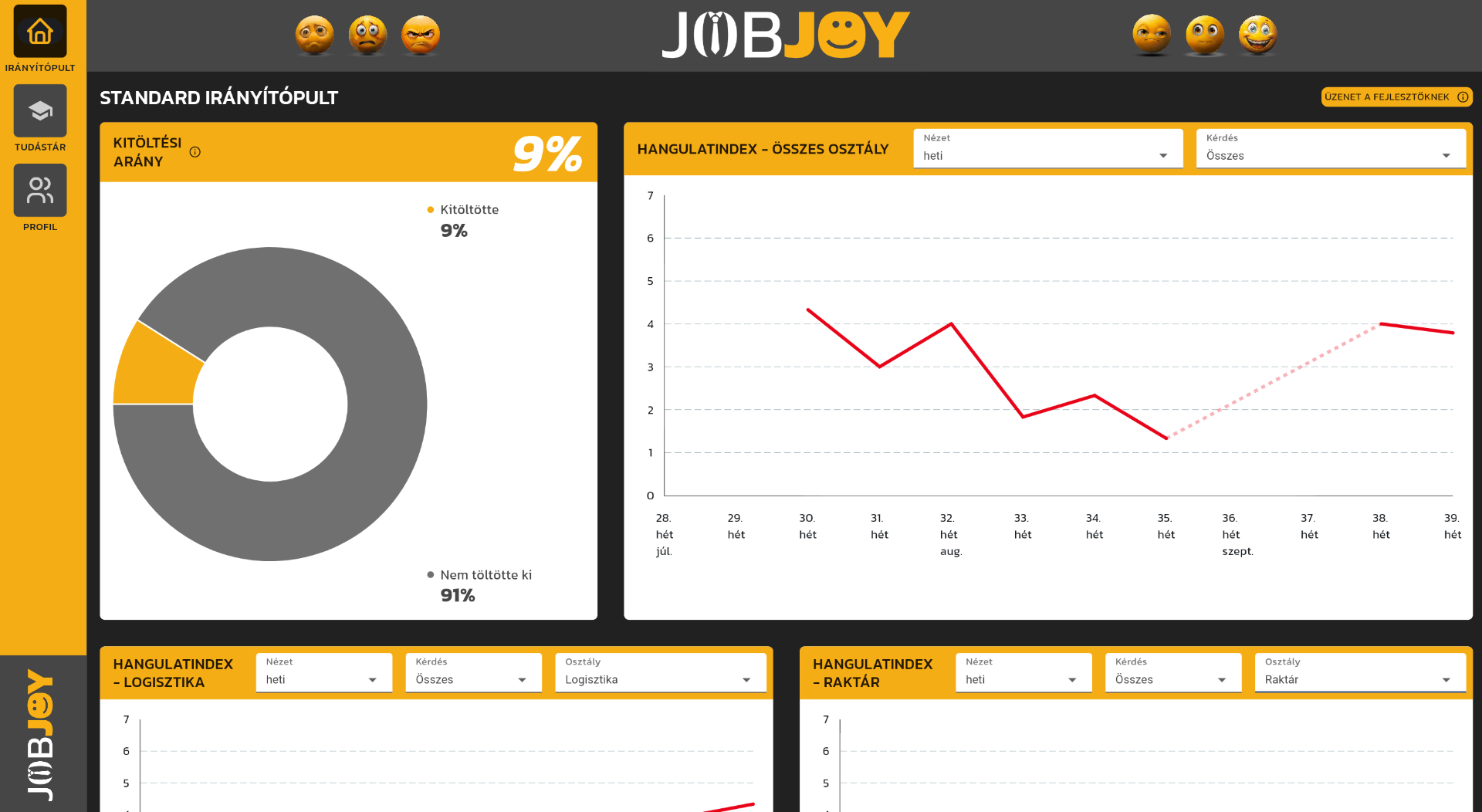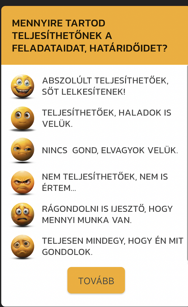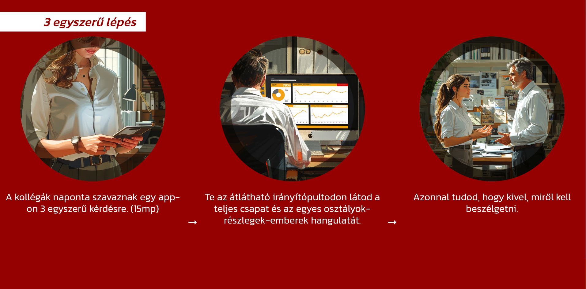 - mutatja az egész cég, osztályok, vagy egyes személyek hangulatát
